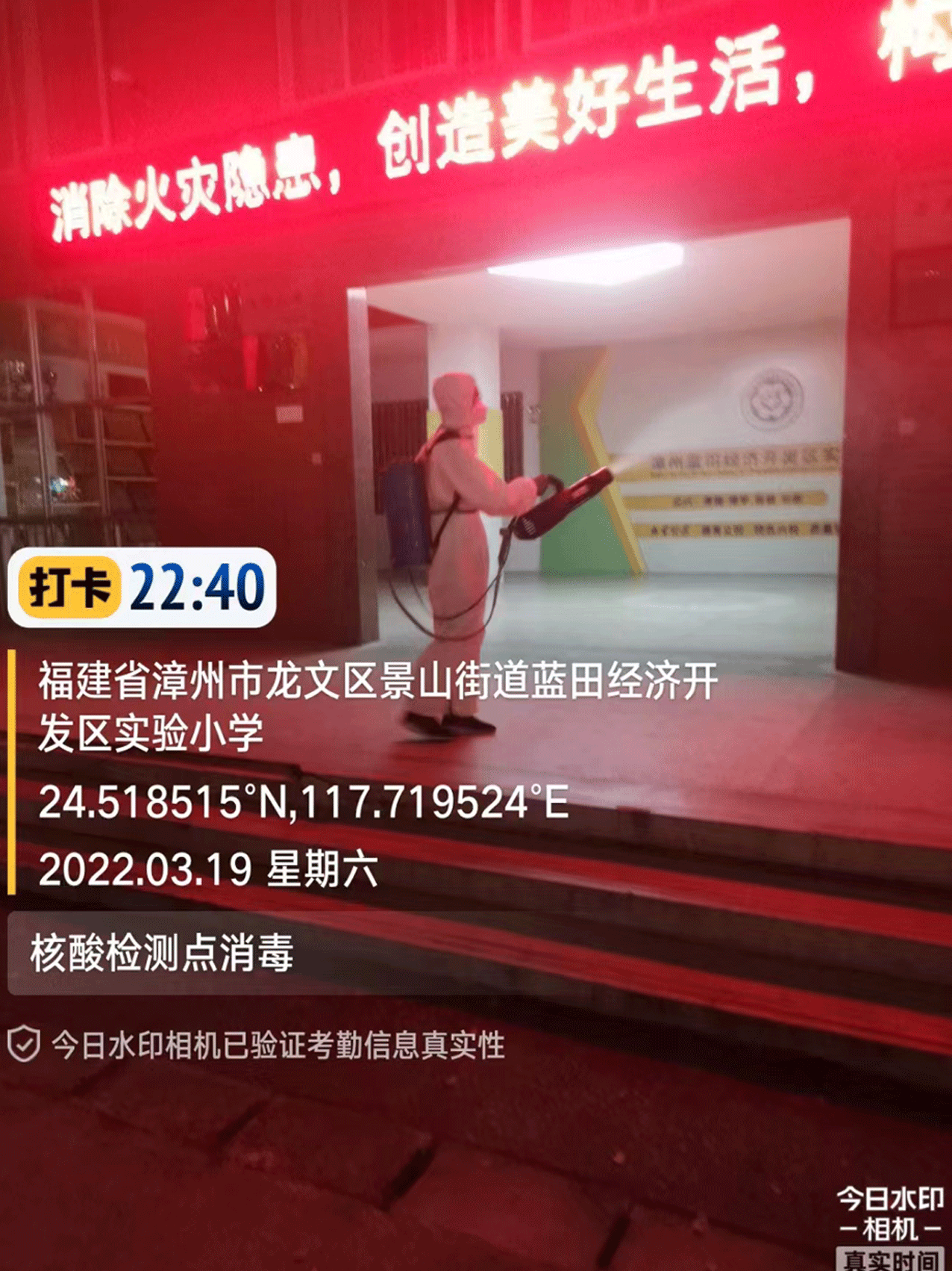 漳州市龙文区景山街道蓝田经济开发区实验小学核酸检测点消毒